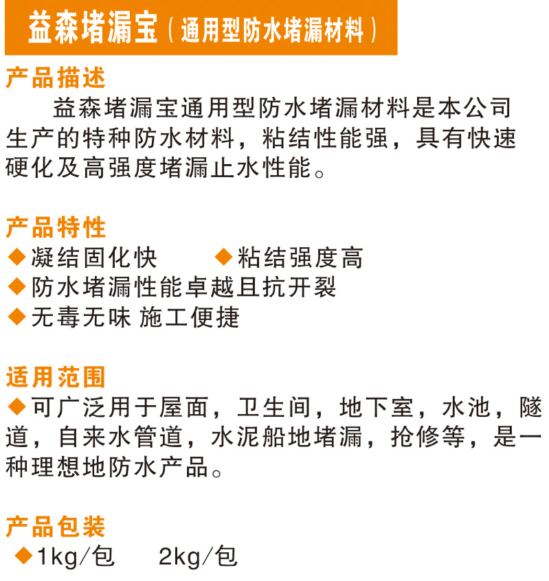 益森堵漏寶(通用型防水堵漏材料)